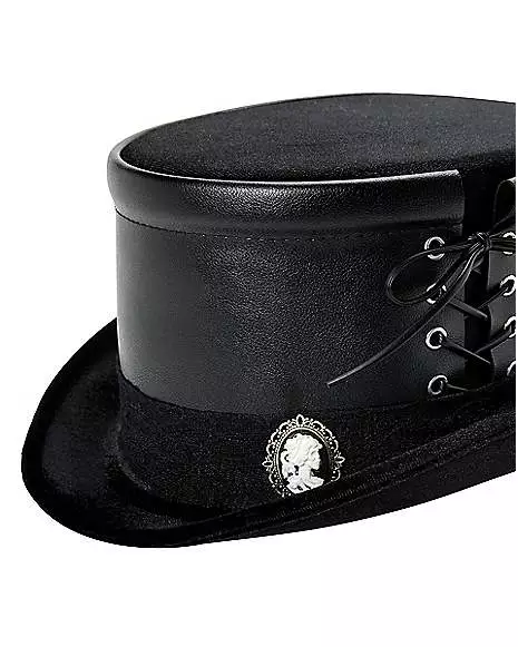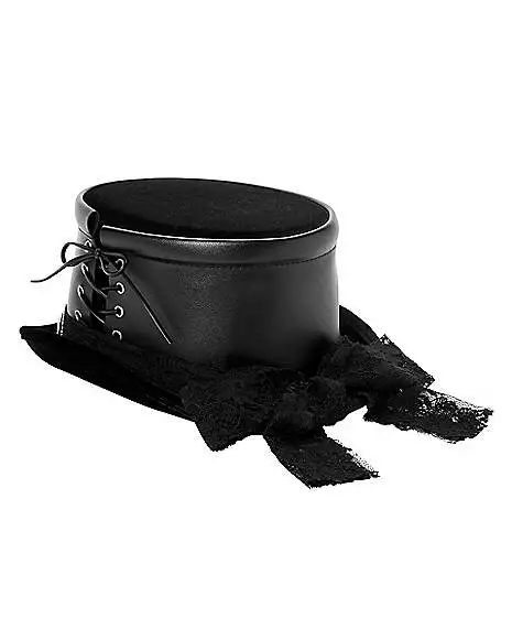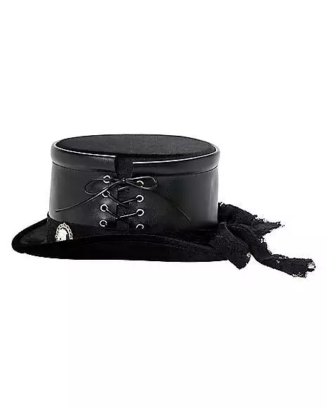 Give yourself a gothic look this Halloween when you rock this black top hat! The Black Gothic Top Hat features a lace tie with a sewn on skeleton button, making it the perfect finishing touch to your dark and eerie costume.