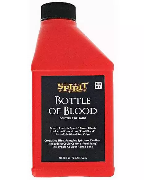 Create your own bloodbath this Halloween with this theatrical quality Bottle of Blood! Add a terrifying twist to Halloween decorations, costumes, or pump-action bleeding accessories. We know you’ll be pouring your sweat and tears into your Halloween party. Let us take care of the blood!