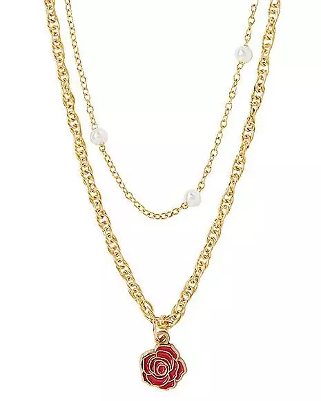 Begin your very own tale as old as time with this beautiful jewelry set! This officially licensed set includes an enchanting goldtone necklace, which is finished with a rose, as well as two matching rose earrings. Show your love for Beauty and the Beast with these lovely earrings!