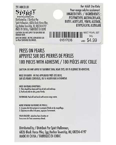 Make your face, body or nails stand out when you wear these white press on pearls! These easy to use adhesives are the perfect way to enhance your costume.